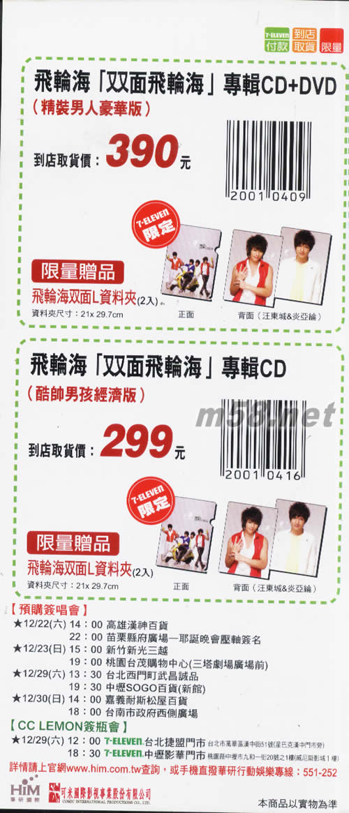 71214027號(hào)訂單獲得預(yù)購大禮:飛輪海簽名照片一張,照片隨碟一起發(fā)出。