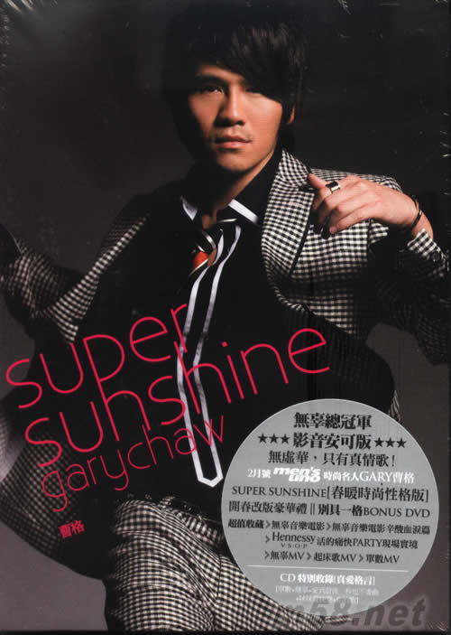 Super Sunshine(影音安可版)新加坡版(m58.net) 無辜總冠軍 影音安可版 無虛華,只有真情歌! 2月號MEN′S UNO時尚名人GARY曹格 開春改版豪華禮 GARY曹格 別具一格 BONUS DVD 收錄: 1.音樂電影首映導演版 (大導周格泰掌鏡百萬音樂電影,體會最無辜的情感脈動) 2.音樂電影幕后血淚篇 (曹格演技進化初公開,辛酸血淚全紀錄) 3. 軒尼詩V.S.O.P活的痛快首映派對現場實錄 (最具話題的時尚盛事,無辜電影首映派對氛圍重現) 4.無辜MV 5.起床歌MV 6.單數MV (百萬MV不留遺憾一次收錄。DVD畫質遠勝網路小檔) CD特別收錄 “MY WAY” (唱我的歌,做我的夢,用我的方式!經典老歌重新演繹,要你再次體驗曹格無極限音域的不思議歌聲! “真愛格言” (單數+無辜+愛到最后一秒也不委曲+妹妹要快樂+愛愛)