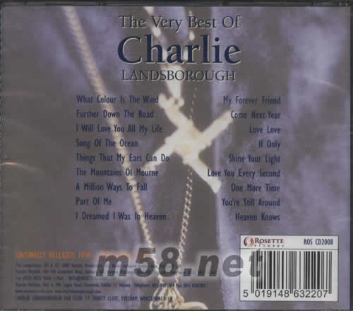 The Very Best Of 差利 蘭保夫精選(m58.net) Charlie Landsborough 是一位愛爾蘭鄉村男歌手,聲音極富磁性,該專輯收錄的歌曲全部由本人作曲填詞,每一首歌曲都非常耐聽悅耳。Charlie Landsborough的這張專輯,以一把清新的醇厚的嗓子獻唱出十七首創作作品,以簡單的樂器襯托出其親切感性的歌聲。開首之Not The Only Thing Blue以鄉謠的引子帶出親切關懷的歌聲。接著I Wish It Was Me口琴響起了輕柔的樂韻與他的歌聲融入在這首情歌中。Special動人的吉他演奏,悅耳的迷人歌聲與弦樂交織出優美的詩篇。壓軸與St.Ambros Rc School兒童合唱團演出Special,如天使般的和平歌聲感染著這個世界。
