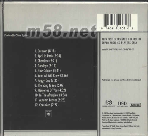 1、CARAVAN 2、APRIL IN PARIS 3、CHEROKEE 4、GOODBYE 5、NEW ORLEANS 6、SOON ALL WILL KNOW 7、FOGGY DAY 8、THE SONG IS YOU 9、MEMORIES OF YOU 10、IN THE AFTERGLOW 11、AUTUMN LEAVES 12、CHEROKEE