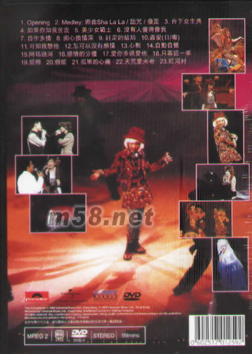 94美的化身演唱會 DVD(m58.net) DVD-9 99分鐘 BACK TO94紅館舞臺 重溫VIVIAN懾人風采 DVD形式首度發行 DVD9收錄 臺下女主角·可知我想他 ·如果你知我苦衷孤單的心痛·最愛·天荒愛未老·自作多情
