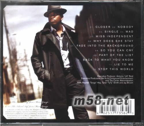 1. Closer靠近 2. Nobody無人能及 3. Single告別單身 4. Mad瘋狂 5. Miss Independent女強人 6. Why Does She Stay她為何留下 7. Fade Into The Background漸漸消失 8. So You Can Cry那你就哭吧 9. Part Of The List愛情清單 10. Back To What You Know不忘初衷 11. Lie To Me欺騙我 12. Stop This World世界停止運轉