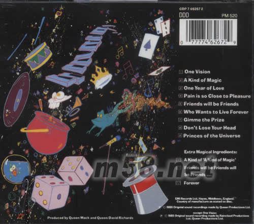 01. One Vision 02. A Kind of Magic 03. One Year of Love 04. Pain is so Close to Pleasure 05. Friends will be Friends 06. Who Wants to Live Forever 07. Gimme the Prize 08. Don't Lose Your Head 09. Princes of the Universe Extra Magical Ingredients: 10. A Kind of 'A Kind of Magic' 11. Friends will be Friends will be Friends... 12. Forever