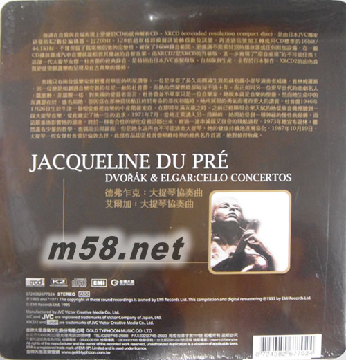 大提琴女杰 杜普蕾 大提琴協奏曲DVORAK & ELGAR CELLO CONCERTO XRCD(m58.net) 杜普蕾絕代經典作品 日本JVC開發生產 巴比羅里指揮倫敦交響樂團