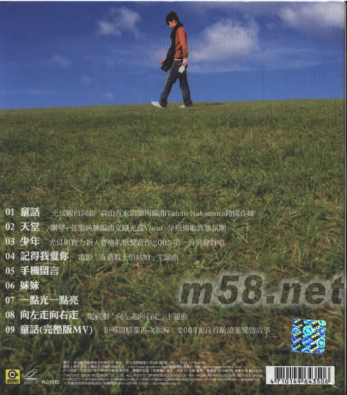 童話 KARAOKE VCD(m58.net) 想念光良的音樂童話,抵達夢想的愛情天堂,光良冠軍專輯《童話》8首卡拉OK VCD特別收錄KTV點播冠軍《童話》,導演完整版音樂錄影帶