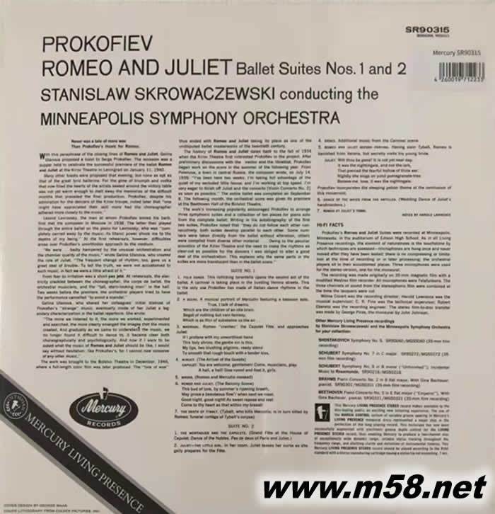 普羅科菲耶夫:羅密歐與朱麗葉芭蕾舞組曲1,2 ROMEO AND JULIET 黑膠專輯背面圖片
