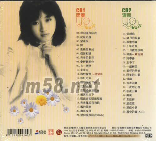 CD1 1.飛向你飛向我 2.就是這樣 3.望著你 4.驛 5.愛情急救站 6.似曾相識 7.青春的動律 8.愛輕輕想你 9.有一個他 10.來來來 11.而對愛情VS林慧萍 12.彩虹之家 13.離開你的理由 14.我好幸福 15.還是希望 16.細訴星光下 17.唱出喜悅唱出甜蜜 18.青春屬于我和你 19.風的節(jié)奏 20.淘氣女孩 21.飛向你飛向我(KALA) CD 2 1.好想你 2.歲月的眼睛 3.風中的畫 4.千年之愛 5.三月里的玫瑰 6.傾訴VS羅吉鎮(zhèn) 7.同學會 8.忘不了 9.一縷輕笑 10.最好的回憶 11.阿婆 12.惜緣 13.青青河畔 14.一夜的心情 15.夜夜月圓 16.微風 17.怎舍得 18.思悠悠 19.那條小足 20.風中的畫(KALA)