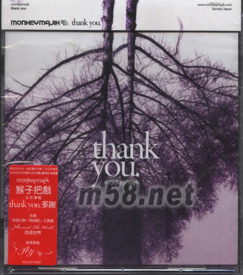 當兩個加拿大人碰上兩個日本人會擦出怎樣的火花?聽聽[MONKEY MAJIK猴子把戲]就知道! 超輕松系混合樂團[MONKEY MAJIK猴子把戲],2000年于日本青森縣正式組成,經過數次團員洗耳恭聽牌后,由加拿大兄弟MAYNARD(主唱&吉他)與BLAISE(主唱&吉他)搭配日本藉的TAX(鼓)和DICK(貝斯)共組而成,他們在獨立廣牌時期就已經被評為樂團明日之星. 從所矚目的[猴子把戲]2006年正式出道后更是火力全開,接連發行單曲[FLY]\[AROUND THE WORLD西游世界],全新專輯[THANK YOU多謝]在日本甫推出就沖上公信榜TOP5,完全證明了猴子把戲的音樂魅力正在全日本輕松流傳中. 自由度透明感滿載的流暢旋律,帶著西洋曲風的獨特風格,英日綜合的歌詞唱出人生的種種,再加上不可思義的節奏感,猴子把戲就是如此的隨性自如,簡單跨越東方與西方音樂世界的隔開.[THANK YOU多謝]收錄正式出道單曲[FLY]以及話題日劇[西游記]的主題曲[AROUND THE WORLD西游世界]共12首作品. 在猴子把戲所創造的輕松空間里面,總是會讓人在不知不覺中頓時都忘了[時間]的存在.這等什么!?新世代的超輕松系混合樂團[MONKEYMAJIK猴子把戲]就缺你來同樂!