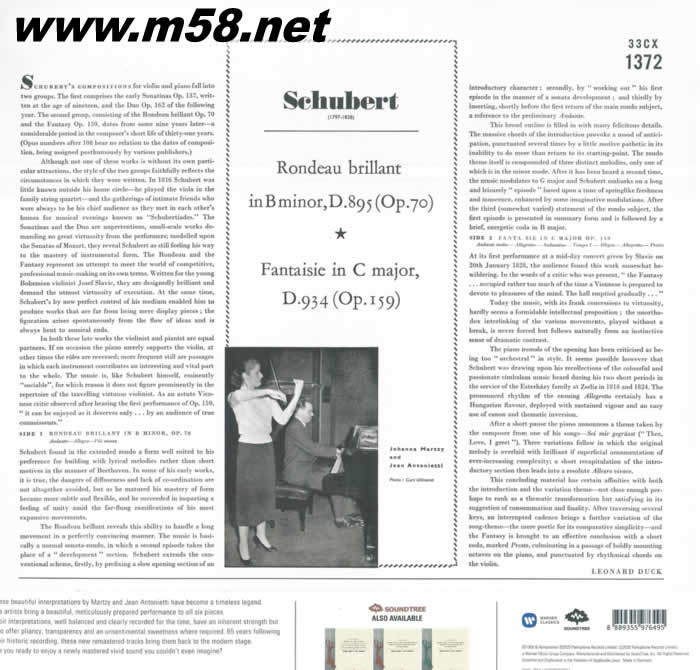舒伯特 小提琴與鋼琴 第三集 Schubert Sonatinas for Violin and Piano Volume 3 小提琴 黑膠(m58.net) Johanna Martzy (violin) & Jean Antonietti (piano)