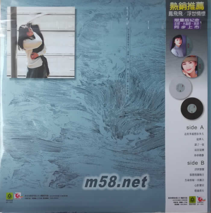 浮世情懷 LP(限量紀念版黑膠)(m58.net) 不信這般的浮世•忠實自己的情懷 這一次 她真正在歌聲中交出了自己 *美國製黑膠膠片 *防灰塵及抗靜電 *紀念版限量典藏 關於這張唱片─ 陳揚 像陳揚這樣執著且忠誠於音樂工作的人,其實已經很少了。 得過五次金鼎獎、三次金馬獎以及去年第一屆金曲獎的陳揚,在流行歌壇上該算是個常勝軍了,但他卻堅持以深厚的專業技術內涵,灌注整張唱片更豐富的音樂。 「鳳飛飛的音色很美,二十年的演唱生涯使她的聲音更為成熟精練?!褂绕湓诼犨^鳳飛飛的Vocal之后,陳揚更篤定他能掌握鳳飛飛的特色,並賦予她新的聲音•新的生命。 陳揚認為:鳳飛飛的長音掌握的很“漂亮”,所以在專輯中,他讓鳳飛飛保留了自己的長處,而在曲風上,減少了節奏樂器的使用,突顯出現代感;另外東方樂器弦樂重奏,增加節奏,又使得專輯中多添一份女性嫵媚的表情,加一重東方神秘的浪漫情懷。 訴諸真實情感,在潛動的生命力中勾勒出人生的感動,字字句句落實在生活故事中,陳揚藝術家般率真的個性正是這次鳳飛飛最新專輯中感動的訴求。 黃霑 鳳飛飛和我初次見面,沒有帽子。 她甚至連粧也沒有怎么化。 清清淡淡,非常容易接近的一位藝術家,話不多,但稍接觸,我知道,這人有內涵。 然后,錄音間里,內涵溢出。我終於明白,她為什么能夠屹立寶島歌壇這么久。 她的歌聲,入耳之舒服,真是筆墨難以盡描。 我感謝上天恩賜,終於有機會,讓我的作品,找到了位這么好的歌者來演繹。 也感謝這張唱片的製作陳揚兄,這位在「金馬獎」競賽中把我打成手下敗將的寶島一流樂人,肯在他監製的杰作里用我的作品。 這是一段我會好好珍惜的緣。 而這段緣,由第一個印象開始至今,全是好的。 羅大佑 鳳飛飛正走在她歌唱生涯的轉捩點上。 幾年來未出唱片,歌壇的轉變已與當初她歌唱並主持電視節目的時代完全不同了。 住在香港六年,淡出歌壇之后,現在的鳳飛飛其實已是個經過了生命的歷練的女人?;橐?、平靜的異地生活、有了小孩的鳳飛飛,在九○年代的今天,是個終於生活過的藝人。 在錄音室內,她更積極的參與製作的過程。她從不放棄任何與製作人討論音樂製作的機會。方向呢?當然是個更成熟的女人的心路歷程與更寬的包容力與更溫暖的性情。 而且所有的這些,必來自真正她的內心。 因為大家都很忙,所以我們真正的討論其實都是在電話中與錄音室內進行的??焖俟澴嗟南愀?,已使鳳飛飛蓄勢待發的決心變得更為堅強。 “心肝寶貝”一曲,歌詞方面的參與她是非常主動的,其實這首歌詞后來我們決定更動的字眼,很多是她經過討論后自己修改的。沒錯,誰能比如此表達臺語歌曲,而且初為人母的她,更瞭解自己要什么呢? “追夢人”的歌唱方面,她已完全不去理會那些長串的歌詞壓力之下所必須跟隨而來的明顯換氣聲。我們的要求必須是高的,因為我們不愿接受任何對以這首歌的主題借題發揮來達到商業效果的批評。鳳飛飛做到了;離開錄音室前廿分鐘的take是她自己要 求的,而且她做到了─這是她歌唱生涯內唱得最好的一首歌,至少我認為如此。 靠說是沒有用的,我們知道必須把它做出來。 九○年代,經過生命洗禮的鳳飛飛,已站在這里,跨出了新的一步。她回來了。 話,其實不用多說,歌聲會證明的。