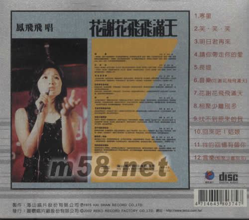 01. 寒星 02. 笑.笑.笑 03. 明日君再來 04. 請你帶走你的愛 05. 長堤 06. 音樂(花謝花飛飛滿天) 07. 花謝花飛飛滿天 08. 相聚少離別多 09. 找不到原來的我 10. 回來吧!姑娘 11. 我的回憶有個你 12. 音樂(相聚少離別多)