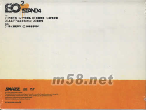 STAND4(m58.net) 雖然港臺(tái)組合層出不窮,可謂新人輩出,但是在星繁如海的歌壇能夠生存實(shí)屬不易,好多也是曇花一現(xiàn)。商業(yè)滲透無(wú)孔不入、宣傳手段層出不窮的香港樂(lè)壇大背景下,能夠平穩(wěn)堅(jiān)持下來(lái)的,當(dāng)屬確有實(shí)力的一類(lèi)。 聽(tīng)EO2的歌,有一種回歸音樂(lè)本真的感覺(jué),首先給人一種認(rèn)真搞音樂(lè)的感覺(jué),配樂(lè)就毫不馬虎,單就吉它的演奏而言,確實(shí)有一定水平,加上擅長(zhǎng)用電子樂(lè),分外優(yōu)美,單聽(tīng)背景音樂(lè)已經(jīng)有一種先聲奪人之美。 演唱方面,四位男生非常注重團(tuán)體的合聲美,總體感覺(jué)是用心在唱歌。也許是一位團(tuán)員是舞蹈家的緣故,聲音的拿捏與感情的收放更自由,有時(shí),能從EO2的音樂(lè)中聽(tīng)出一些肢體語(yǔ)言之美。