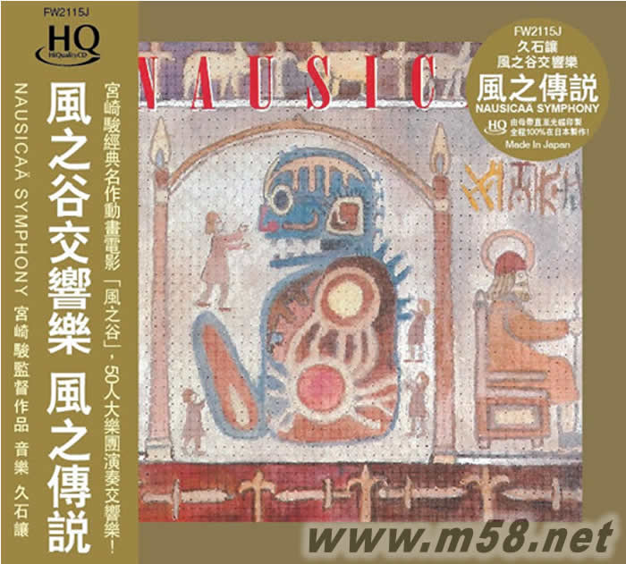 風之谷交響樂 風之傳說 HQCD(m58.net) 宮崎駿經典名作動畫電影「風之谷」 50人大樂團演奏交響樂! 《》 Nausicaä Symphony 宮崎駿監督作品 音樂 久石讓 宮崎駿監督于德間書店出版之動畫月刊雜志ANIMAGE內連載多年之同名漫畫, 于1984年拍成電影登上大銀幕! 音樂大師久石讓首出為宮崎駿配樂之作品交響樂版本! HQCD由日本Memory Tech壓制 , 澎湃音色淋漓盡致!