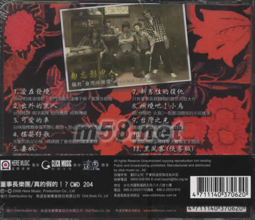 真的假的!?(m58.net) 歡迎光臨新董時代 金曲獎 臺客搖滾 海洋音樂季 硬地音樂展 十一月的臺灣熱呼呼,董事長樂團的第6張創作專輯 感覺是《動袂ㄉㄧㄠˊ》地要發動了《真的假的!?》是一張非常“臺灣快樂、快樂臺灣”的唱片,專輯音樂設計把搖滾精神跟快樂人生做了一個充滿喜悅的整合,第一眼好像是讓過去和現在對比,實際上卻是發展出全新的重生力量。 “辛苦卻快樂著”與“有所向”的心靈依歸,在布袋戲與威廉波特少棒賽的那個時代,曾經是臺灣生命力最旺盛的年代;這張專輯里面,董事長的設計找回了當時的快樂與希望。聽得見幽默感!就如歌名的時代性對照。 “可愛的車”—“可愛的馬”、“燃燒吧.小鳥”—“燃燒吧.火鳥”、“出外的人”—“出外的黑人”。董事長以幽默的題目帶出了臺灣的時事新觀點。把同個土地不同時間的兩樣情,換個說唱方式,懷念一下,也笑談一會兒。 聽得見迪斯可!本專輯中大量運用七O與八O年代的音樂元素,當大多數音樂人極力尋求所謂新樂風新曲式的時候,董事長找到了讓音樂回到快樂的方式。所謂復古的元素,其實更適合了目前現在社會氣氛所需要的輕松看+輕松聽+輕松度過,步伐的節奏感,顏色在視覺里的豐富,聽覺的過癮度都會在主打歌“愛在發燒”中首先被感染。 聽得見光榮歲月!“追追追”的精神,是找回萬眾一心的融合重生與奮發向上的同心,藉著“臺灣之光”王建民變成“亞洲之光”的不斷進步中,讓大家一起感受往前直沖的心靈深度運動。 在新舊的對比中,聽得見自在快樂的原動力!“可愛的車”對照了早期臺語歌“可愛的馬”,跨越三十年,縱橫全臺灣,提醒了這時代的臺灣人可以找回曾經的簡單,重新發掘快樂的源頭,找出相依相伴的理由跟力量。 “新 男性的復仇”采用了新編曲的演繹方式,讓大多數只會念卻不會唱的人能夠好好跟大伙兒一起參加愛情連續劇的歌唱演出。“出外的黑人”把進口外勞十年,臺灣產生新移民的文化沖擊與時代悲喜劇用他們觀察的眼光與莞爾的口吻,輕松地娓娓道出辛酸故事。 專輯中歌曲的創作仍然保持著董事長慣有的敘事風格與時事關懷,無論是描述的呈現,或是歌詞中類似口白的演唱,都直接傳達出董事長與這塊土地相處的歷史,以及董事長對臺灣所有人群的觀察跟用心。 正如“出外的黑人”描寫的正是21世紀來臺灣工作與完成婚姻的新移民們百態,以及他們與我們對融合生活的反應。