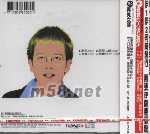 兩伊戰爭之白色才情再見女郎(m58.net) 伊1 紅色熱情:一張由情歌圣手陳志遠 鄭華娟 Ricky Ho…等名家 為張雨生量身訂作的情歌寶典 伊2 白色才情 一張由張雨生一手包辦詞曲編曲制作的創作專輯 浪漫奇詭才情澎湃 展現全方位音樂才情