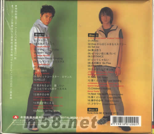 價(jià)格為估,以實(shí)到貨為準(zhǔn)! SUPER BEST(m58.net) 請點(diǎn)看產(chǎn)品正、背面大圖 本產(chǎn)品含有KINKI KIDS98年演唱會(huì)VCD
