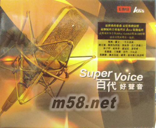 價格為估,以實到貨為準! 百代好聲音Super Voice (2 ADMS)(m58.net) 最經典的歌曲 最精彩的演譯 最細膩的音效處理 2CD經由專業音樂人Leo Fung最新研發的音效技術ADMS處理。 收錄32首男女歌星經典歌曲: 包括: 甄妮/羅文 - 一生有意義 、陳百強 - 眼淚為你流、葉振棠 - 找不著藉口、 林子祥 - 夜來香、盧冠廷 - 憑著愛、葉麗儀-上海灘、羅文 -激光中、關正杰 -東方之珠 彭羚 - 小玩意 、蔡齡齡 - 細水長流 、盧業瑂 - 夜本無人私語時、陳美玲 -如果.. 等。