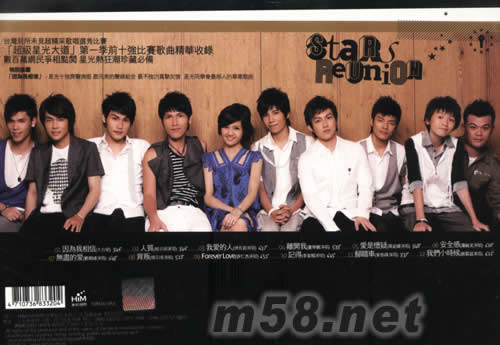 星光同學會-星光大道10強紀念專輯(m58.net) 一起流過的淚,一起唱過的歌,怎么可能把它遺忘. 永遠不散布的筵席,永遠燦爛的星光 2007年超光十強:安伯政,李宣榕,周定緯,林宥嘉,許仁杰,楊宗緯,潘裕文,盧學叡,謝震廷 超值加贈:星光十強,成長精華紀錄 BONUS DVD
