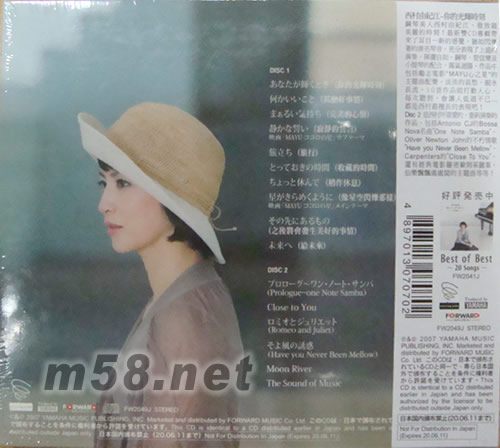 鋼琴美人西村由紀江,發放最美麗的時刻!最新雙CD專輯帶來了耳目一新的感覺,猶如閃爍著的清亮琴音,充分表現了上乘的演奏,揮酒自如,鋼琴、管弦樂及小提琴的配合,蕩氣回腸,。作品中包括勵志電影MAYU心之星的主題曲配樂,淡淡的哀愁,細水長流。10首作品能打動人乞討,每次聽到,會讓人低回不已……
