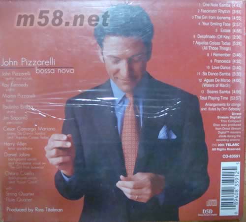 John Pizzarelli Bossa Nova 約翰‧皮薩瑞里 巴莎諾瓦(m58.net) 則則故事成就了整張專輯,待聽眾細細品味 音樂從一則則故事開始,且讓皮薩瑞里娓娓道來。事情是這麼開始的,西元1981年,Pizzarelli與同是爵士吉他手的父親Bucky Pizzarelli結束了在Pierre Hotel的演出,開車回家的途中,收音機轉到了WNEW-AM電臺,Bossa Nova吉他大師Joao Gilberto正在收音機裡演奏著經典名曲《Besame Mucho》。剎那間老少Pizzarelli都被電到了,老Pizzarelli更吩咐兒子趕緊去找這張專輯。于是,也開啟了小Pizzarelli巴西音樂的探索之旅。西元1998年,John Pizzarelli的樂團來到巴西圣保羅的Bourbon Street酒吧表演,正傷腦筋該選哪首曲子當作安可時,臺下一名聽眾大叫:「來首《Girl from Ipanema》吧!」於是樂團開始演奏,然沒想到唱完了英文歌詞后,一名精狀的在地漢子站起來,跟著樂團伴奏唱起了葡萄牙文的歌詞版本。而Pizzarelli在錄製這張專輯時,想起這個故事,於是找了位巴西人替他唱葡萄牙文的部分,目的在重現當年的氣氛。而這位巴西歌手不是別人,就是該曲作曲家Antonio Carlos Jobim的孫子Daniel Jobim。 關於五零年代的 巴莎諾瓦Bossa Nova, 起源自巴西音樂節奏與爵士樂結合成柔和舒暢、慵懶、輕聲吟唱的音樂,這種如與人傾談的獨特唱功成為巴西最重要的流行音樂,一般以吉他、小喇叭、薩克斯風伴奏,近年來更融合電子音樂,成為最時尚沙發音樂。