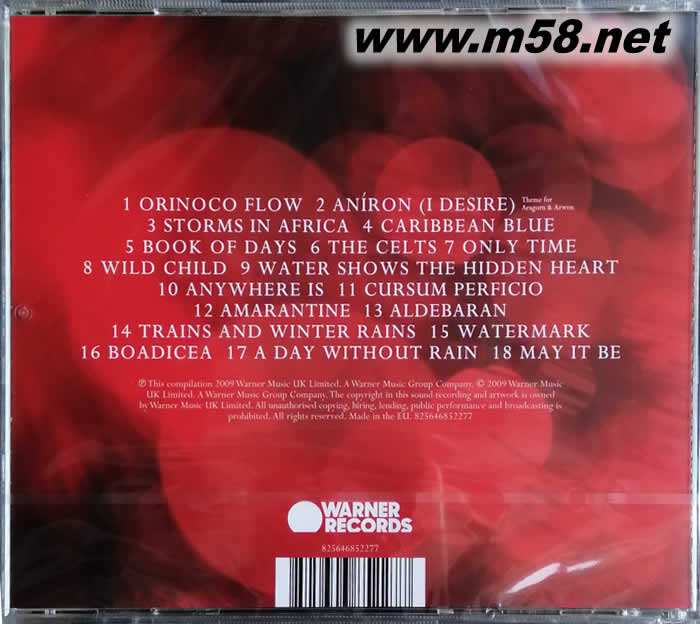 01. Orinoco Flow 02. Aniron (I Desire)Theme for Aragorn & Arwen 03. Storms in Africa 04. Caribbean Blue 05. Book of Days 06. The Celts 07. Only Time 08. Wild Child 09. Water Shows The Hidden Heart 10. Anywhere Is 11. Cursum Perficio 12. Amarantine 13. Aldebaran 14. Trains and Winter Rains 15. Watermark 16. Boadicea 17. A Day Without Rain 18. May It Be