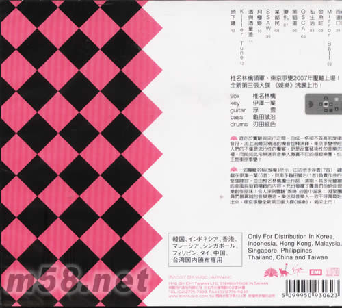 Variety娛樂(臺灣版)(m58.net) ◎ 椎名林檎領(lǐng)軍、東京事變2007年娛樂上市!! ◎ 由一群堅(jiān)持音樂本色的創(chuàng)作家所聚集而成的超級樂團(tuán)!!收錄熱門單曲〈OSCA〉、〈Killer Tune〉,一共13首全新縝緻的音樂精品。 椎名林檎領(lǐng)軍、東京事變2007年壓軸上場!全新第三張大碟 《娛樂》沸騰上市! vox 椎名林檎 key 伊澤一葉 guitar 浮 云 bass 龜田誠治 drums 刃田綴色 游走於實(shí)驗(yàn)與流行之間、自成一格卻不孤高的旋律音符,加上流暢又精湛的嗓音詮釋演繹,東京事變帶給人們的不僅是流行性的饗宴,更是品嘗藝術(shù)性的音樂洗禮。而能夠如此令樂迷與音樂人激賞不已的超級樂團(tuán),也正是東京事變! 一如專輯名稱《娛樂》所示,由吉他手浮云(7首)、鍵盤手伊澤一葉(5首)、貝斯手龜田誠治(1首)負(fù)責(zé)作曲的堅(jiān)強(qiáng)陣容,并由椎名林檎擔(dān)任作詞.演唱。其多元豐富的曲風(fēng)與新穎精緻的內(nèi)容,充份發(fā)揮了團(tuán)員們的絕佳音樂創(chuàng)作品味!令人深刻體驗(yàn)「娛樂」的箇中滋味! 凝聚團(tuán)員們最真誠的音樂意念,樂迷與音樂人一致千呼萬喚始出來、東京事變?nèi)碌谌龔埓蟮秺蕵贰罚?喝采上市!