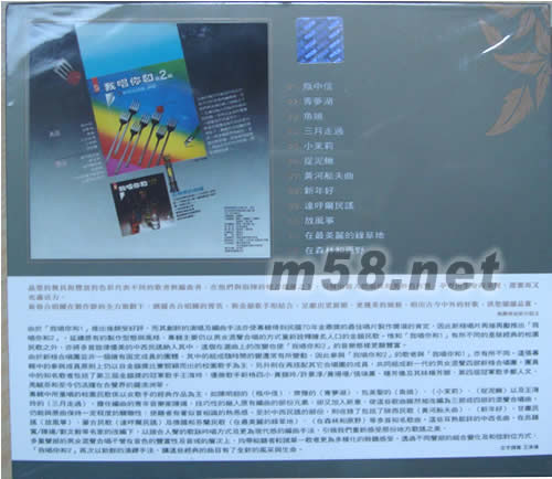 我唱你和 第2輯(m58.net) 晶瑩的餐具和豐富的色彩代表不同的歌者與編曲者,在他們與指揮的輕刀細琢之下,引導(dǎo)出動人的韻律和美妙的和聲,孕育出生命的果實,甜蜜而又充滿活力。 新格合唱團在制作群的全力策劃下,網(wǎng)羅各合唱團的菁英,與金韻歌手相結(jié)合,呈獻出更新穎、更優(yōu)美的風(fēng)貌,唱出古今中外的好歌,供您細細品賞。(黑膠背面原介紹文) 由於「我唱你和1」推出後頗受好評,而其創(chuàng)新的演唱及編曲手法亦使專輯得到民國70年金鼎獎的最佳唱片制作獎項的肯定,因此新格唱片再接再勵推出「我唱你和2」。本專輯延續(xù)原有的制作型態(tài)與風(fēng)格,但也將多首旋律優(yōu)美的中西民謠納入其中使「我唱你和2」的音樂態(tài)樣更顯豐富。 參與成員仍以自金韻獎比賽脫穎而出的校園歌手為主,搭配其它合唱團成員,組成新一代的男女混聲四部新格合唱團。知名歌者包括第三屆金韻獎的冠軍歌手王海玲、優(yōu)勝歌手新格四小-黃韻玲/許景淳/黃珊珊/張瑞薰、楊芳儀及其妹楊芳卿、第四屆冠軍歌手鄭人文、馬毓芬和仍活躍在合聲界的羅添洲等。 專輯中所重唱的校園民歌系以女歌手的經(jīng)典作品為主。如陳明韶的〈瓶中信〉、齊豫的〈青夢湖〉、包美圣的〈魚娘〉、〈小茉莉〉、〈捉泥鰍〉以及王海玲的〈三月走過〉。擔(dān)任編曲的陳揚,技巧性的融入原有編曲的部份元素,卻又加入新意,與原曲保持一定程度的關(guān)聯(lián)性。中西民謠部分收錄了包括了 西民歌〈黃河船夫曲〉、〈新年好〉,甘肅民謠〈放風(fēng)箏〉、蒙古民歌〈達呼爾民謠〉及德國和芬蘭民歌〈在最美麗的綠草地〉、〈在森林和原野〉等知名歌曲。這些耳熟能詳?shù)闹形髅?,在呂錘寬/陳揚/劉文毅等名家的改編下,以諧合人聲的歌詠吟唱方式及更為現(xiàn)代感的編曲手法,引領(lǐng)我們感受那份地方歌謠之美。