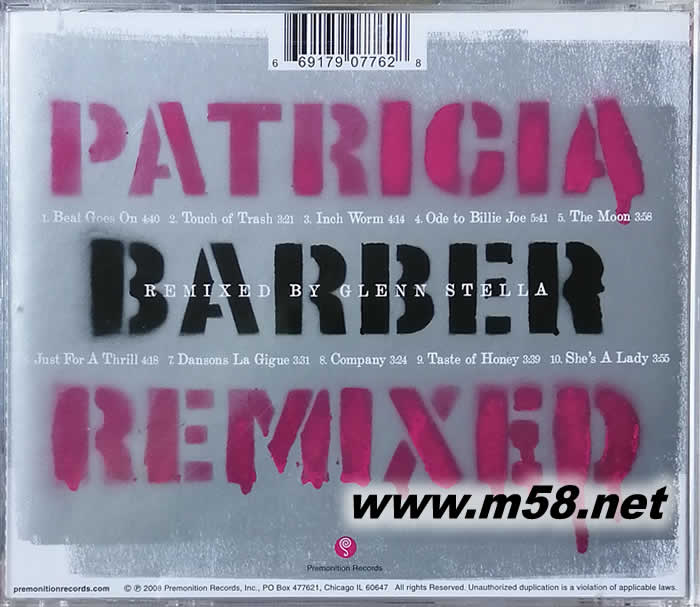 REMIXED 重塑(m58.net) 發(fā)燒爵士女歌手 PATRICIA BARBER的演唱賦予作品一種酷味十足的感染力,這張全新專輯,她揉合騷靈,藍(lán)調(diào),搖滾,甚至說(shuō)唱的爵士風(fēng)格已入化境,這民多元化的表現(xiàn)實(shí)在令人傾倒~~