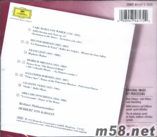 卡拉揚(yáng)指揮的最著名的舞曲,包括邀舞,浮士德的舞會,時鐘之舞等