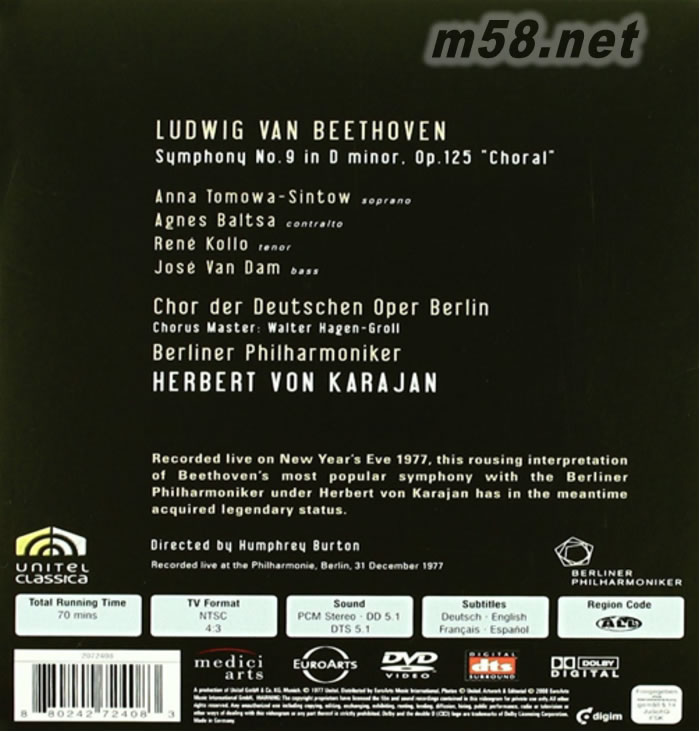 價格為估,以實到貨為準! 貝多芬:第九號 合唱 交響曲 卡拉揚, BEETHOVEN SYMPHONY NO. 9 in D minor, OP. 125 CHORAL DVD(m58.net)
