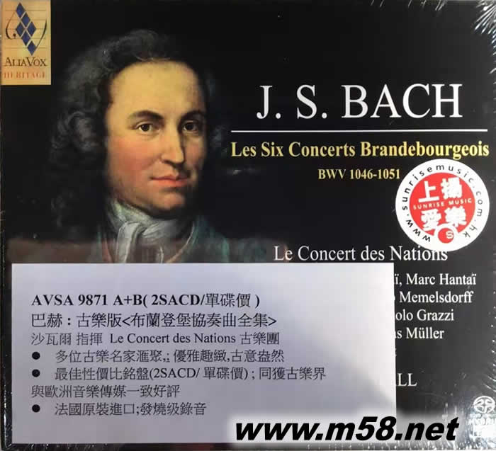 Bach - Les Six Concerts Brandenbourgeois 巴赫 : 古樂版 布蘭登堡協奏曲全集 2 SACD(m58.net) 沙瓦爾 指揮 Le Concert des Nations 古樂團 多位古樂名家滙聚,; 優雅趣致,古意盎然 最佳性價比銘盤(2SACD/ 單碟價) ; 同獲古樂界與歐洲音樂傳媒一致好評 法國原裝進口;發燒級錄音