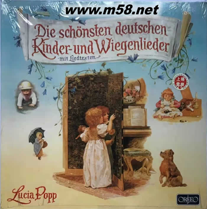 DIE SCHONSTEN DEUTSCHEN KINDER-UND WIEGENLIEDER 美麗的德國童謠及搖籃曲 黑膠(m58.net) 一張充滿童趣的歌謠音樂!不論是童謠或搖籃曲,都屬於德國民謠,經由代代相傳至今,仍受人們喜愛。不僅是孩童,就連歷經社會洗鏈的大人們,在聽了如此純潔可愛的自然之聲,也會愛不釋手的;雖說是德文歌曲,相信早已流傳到世界各地,填入各國語言由兒童們從小諄唱著。臺灣國小音樂課本中之《布穀鳥》《春神來了》及《小蜜蜂》等皆源於此。主唱者波普就像一位平易近人之說唱者,配合著歌詞的內容,生動地吸引著我們的注意力。值得一提的是樂隊伴奏中使用了音效奇特的單簧口琴,聽來更增加詼諧感。