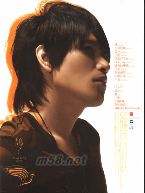 鴿子(影音升級慶功版)(m58.net) 2008新歌王 楊宗緯 首張個人專輯「鴿子」 CD+DVD影音升級慶功版 DVD收錄5首主打完整版MV [鴿子] [讓] [洋蔥] [幸福的風] [對愛渴望] +窩藏楊宗緯_鴿聚貼身追擊 (紀錄每一刻與楊宗緯相聚的感動) 附贈 楊宗緯2008全新造型寫真卡