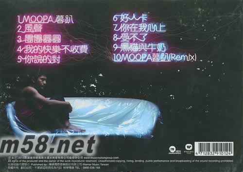 01. Moopa 暮趴 02. 風聲 03. 團團圓圓 04. 我的快樂不收費 05. 你說的對 06. 好人卡 07. 你在我心上 08. 受不了 09. 黑貓與牛奶 10. Moopa 暮趴 Remix