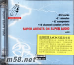 SUPER ARTISTS ON SUPER AUDIO VOL.6 最強精選SACD天碟第6輯(m58.net) 試機必備的精選發燒天碟 精挑細選19首最適合測試高級及音響哭材的示范天碟曲目,不同類型的樂曲爆發出不同形態的音效,包括大提琴,合唱曲,小提琴,鋼琴,四重奏與及樂團現聲場實況錄音等,內豐富充實,每首曲目均各有特色,絕對能滿足發燒友的欲望,去集多位國際級演奏家超過70分鐘的發燒盛宴,令你樂而忘返!
