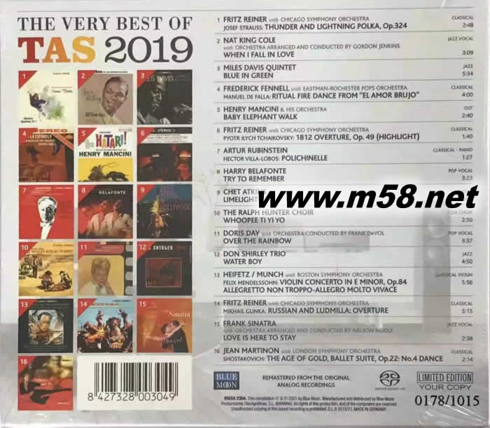 絕對之聲 The Very Best of TAS 2019 16首精選 SACD限量版(m58.net) 西班牙藍月亮Blue Moon 2019年重點推薦,全力打做,精心挑選16張真正TAS上榜天碟,抽選當中最佳歌曲,由模擬母帶制作,德國印碟。藍月亮旗下爆棚精選,加上最強之制作人,最先進設備,把重播音效更推上一層,帶出無可比擬之發燒音效,2019年示范級完美天碟!