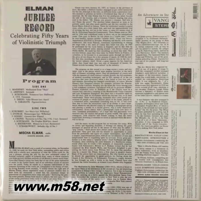 米斯卡 艾爾曼 JUBILEE RECORD CELEBRATING 50 YEARS 小提琴與鋼琴 黑膠(m58.net) 爾曼寬厚、甜美、豐潤的琴聲演繹多首動人小品:沉思、小夜曲、夢幻曲等。
