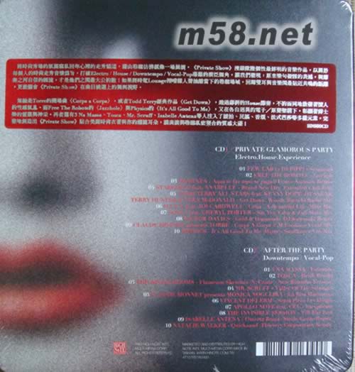 私人派對PRIVATE SHOW(m58.net) ◎貼身節奏舞動透明音符,潮流聆聽最豪華的私密經驗! ◎竊私時尚秀場的美麗氛圍,浩室緩拍香頌共譜的精采大碟! ◎雙CD揉合性感電氣因子與濃厚法式元素,★★★★★滿分推薦! 將時尚秀場的氛圍竊私回你心裡的走秀貓道,藉由聆聽彷彿就像一場展演。《Private Show》搜羅歐陸個性最鮮明的音樂作品,以屬於每個人的時尚走秀音樂為旨,打破Electro/House/Downtempo/Vocal-Pop藩籬的廣泛觸角,讓我們發現:原來樂句優雅的表述,與節奏之河自信的匯流,才是他們之間最大公約數!如果將時髦Lounge裡嘈雜人聲抽離當下的聆聽場域,回歸雙耳與音樂間最貼近共鳴的距離,更能體會《Private Show》在曲目挑選上的獨到視野。 無論是Torre的開場曲〈Corps a Corps〉,或者Todd Terry經典作品〈Get Down〉,透過澎湃的House節奏,不約而同地散發著撩人的性感氣息。而Free The Robots的〈Jazzhole〉與Physics的〈It's All Good To Me〉,又在各自迥異的電子/原聲架構下,彰顯著爵士樂的靈韻與神采。再者還有3 Na Massa、Tosca、Mr. Scruff、Isabelle Antena等人注入了緩拍、民謠、香頌、法式芭莎等多樣元素,完整地創造出《Private Show》貼合美麗時尚衣著與你的潮流耳朵,讓表演與聆聽私密契合的質感大碟!