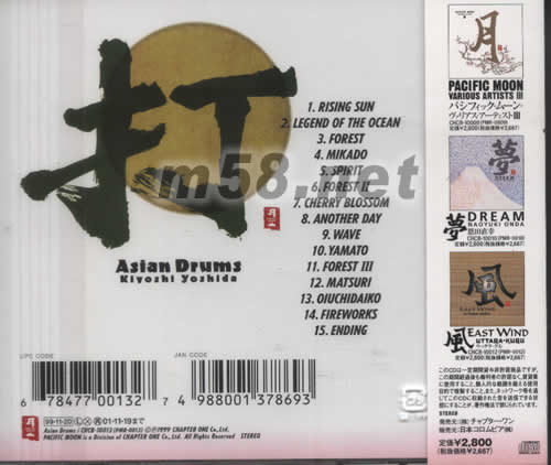 1.RISING SUN 2.LEGEND OF THE OCEAN 3.FOREST 4.MIKADO 5.SPIRIT 6.FOREST II 7.CHERRY BLOSSOM 8.ANOTHER DAY 9.WAVE 10.YAMATO 11.FOREST III 12.MATSURI 13.OIUCHIDAIKO 14.FIREWORKS 15.ENDING