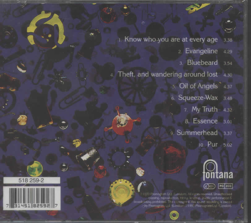 1 Know Who You Are At Every Age 2 Evangeline 3 Bluebeard 4 Theft, And Wandering Around Lost 5 Oil Of Angels 6 Squeeze-Wax 7 My Truth 8 Essence 9 Summerhead 10 Pur