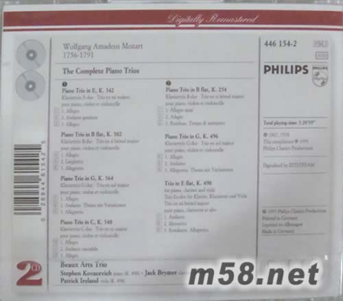 MOZART THE COMPLETE PIANO TRIOS莫扎特鋼琴三重奏(PHILIPS系列)專輯背面圖片