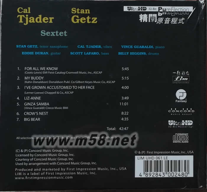 CAL TJADER & STAN GETZ SEXTET ULTRAHD 限量版專輯背面圖片