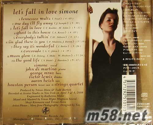 Let‘ Fall In Love 動人情感 Simone(m58.net) 靚聲爵士女歌手SIMONE 伙拍昔士風大師HOUSTON PERSON 及鋼琴大師JOHN DI MARTINO演繹多首經(jīng)典名曲。柔情的唱腔及醉人的旋律怎不令人心動。日本VENUS遠赴紐約頂級錄制,音色通透極具立體感。