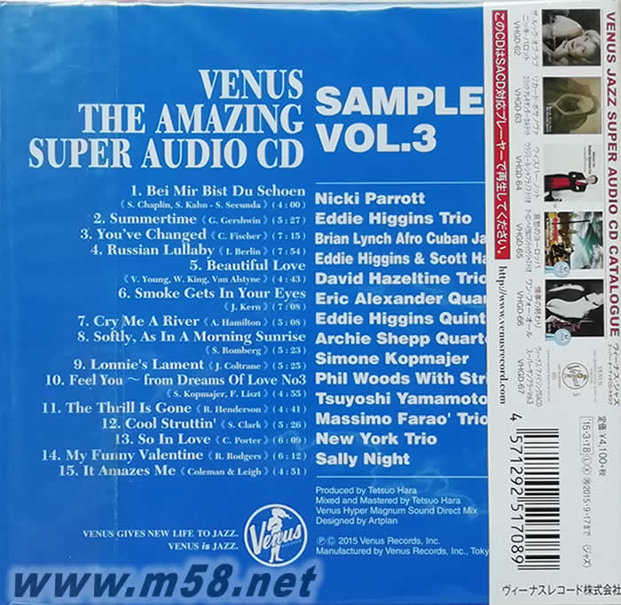 夢幻發燒試碟王 3 VENUS THE AMAZING Super Audio CD SAMPLER VOL.3(限量單層SACD)專輯背面圖片
