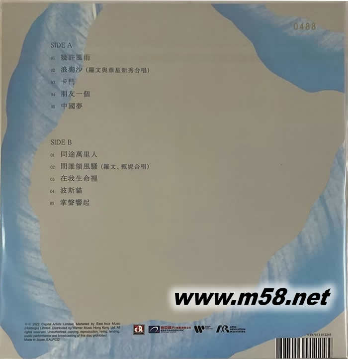 價(jià)格為估,以實(shí)到貨為準(zhǔn)! 羅文極品珍藏 黑膠(m58.net) 使定位更清晰立體,高頻與泛音圓滑和緊密,飽滿的主體結(jié)像扎實(shí),寬容的低頻,自然細(xì)膩人聲及情感…等等,多項(xiàng)聲效皆取得絕佳效果及前所未有重大突破 簡(jiǎn)直無懈可擊 【音響技術(shù)]:對(duì)於新世代廣東歌樂迷而言,羅文(1945-2002)是樂壇之中其中一個(gè)傳**奇的名字。時(shí)至今天,他仍是那一輩廣東歌樂迷的集*體*記憶,其多樣化兼技藝超卓的歌藝,以響亮有力,字正腔圓成為獨(dú)有標(biāo)誌,可說是代表著那一個(gè)時(shí)期的光**輝**歲**月,有見及此,「華星/東亞唱片」特選十首羅文經(jīng)典歌曲為「極品珍藏」,復(fù)刻成透明藍(lán)膠唱片以饗*知*音者。這位至2000年代初期間,被視為帶動(dòng)粵語流行曲發(fā)展的先*驅(qū)*者活*躍於1960年代末,在1983年加*盟「華星唱片」,以主唱當(dāng)年*極*受歡迎的電視片集「絲綢之路」主題曲「同*途*萬*里*人」(唱片B面第一首)打響頭*炮。另一首「波斯貓」(B面第四首)的前**衞、大膽、破*格挑戰(zhàn)*性*別角色的歌曲,當(dāng)年被視為情**慾*歌的先**驅(qū),惹來電臺(tái)*林*示*播的疑雪。 1985年2月19日,羅文參演央電視臺(tái)春節(jié)聯(lián)歡晚會(huì),其中兩首獻(xiàn)唱的歌曲,有「在我生*命裡」(B面第三首),和「中*國(guó)*夢(mèng)」(A面第五首)。羅文自此逐漸紅遍內(nèi)地。 86年,「幾許**」(A面第一首)推出,羅文以油然自得,把歡笑與鬱*結(jié)交錯(cuò)的心聲盡情傾訴。另有「浪**」這專輯為羅文帶來另一張的白金唱片,並於該年獲得多個(gè)獎(jiǎng)項(xiàng)。到87年,「朋」以「妖*」唱腔,重新詮釋60年代的代表作,國(guó)語歌「卡*」與另歌唱事業(yè)生涯苦樂的「掌」。