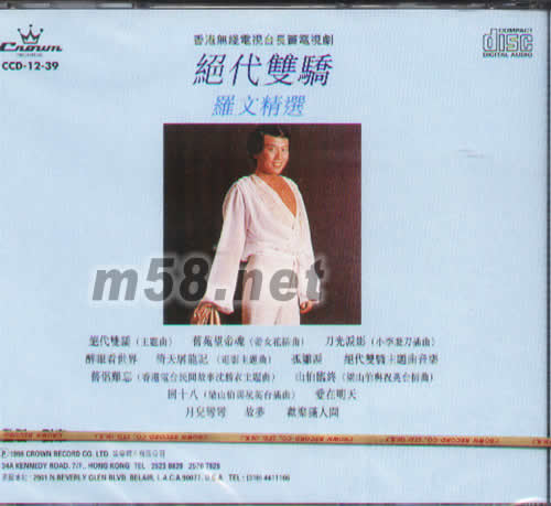 01. 絕代雙驕 (主題曲) 02. 舊苑望帝魂 (帝女花插曲) 03. 刀光淚影 (小李飛刀插曲) 04. 醉眼看世界 05. 倚天屠龍記 (電影主題曲) 06. 孤雛淚 07. 絕代雙驕主題曲音樂(lè) 08. 舊侶難忘 (香港電臺(tái)民間故事沈勝衣主題曲) 09. 山伯臨終 (梁山伯與祝英臺(tái)插曲) 10. 回十八 (梁山伯與祝英臺(tái)插曲) 11. 愛(ài)在明天 12. 月兒彎彎 13. 故夢(mèng) 14. 歡樂(lè)滿人間
