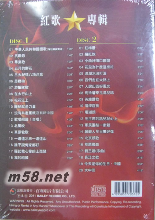 價格為估,以實到貨為準! 紅歌專輯 金碟(m58.net) 名家演唱:劉秉義、臧玉琰、閻維文、張也、殷秀梅、李谷一、馬群琪、高楓、中央樂團合唱團、中國廣播藝術團合唱團等。