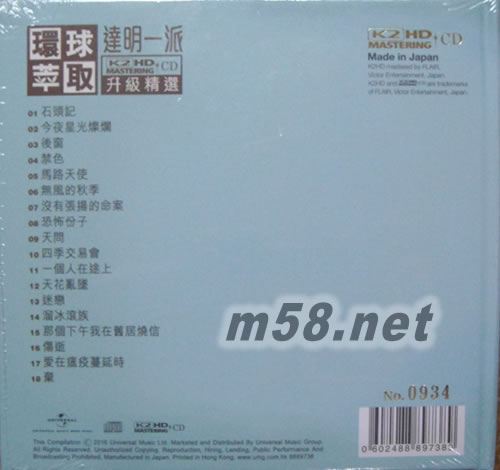 環球萃取K2HD升級精選(m58.net) 10款2016年全新面世的巨星個人精選輯 每款萃取約18首大熱好歌 以K2HD CD重新精製 Phase14 首批1000套限量編號.日本名廠Memory-Tech壓碟