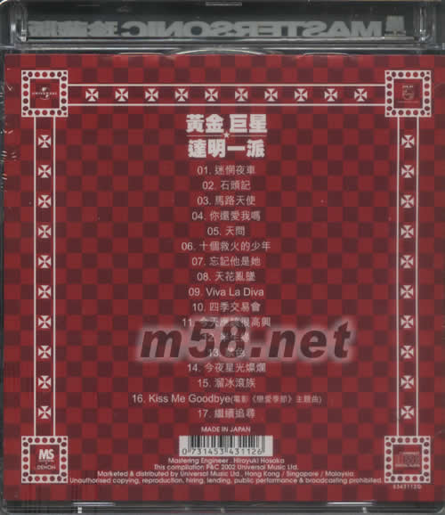 01. 迷惘夜車 02. 石頭記 03. 馬路天使 04. 你還愛我嗎 05. 天問 06. 十個救火的少年 07. 忘記他是她 08. 天花亂墜 09. Viva La Diva 10. 四季交易會 11. 今天應該很高興 12. 半生緣 13. 禁色 14. 今夜星光燦爛 15. 溜冰滾族 16. Kiss Me Goodbye(電影《戀愛季節》主題曲) 17. 繼續追尋