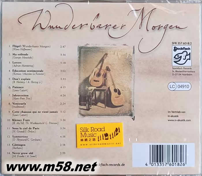 齊齊FOLK第二集 WANDERBARER MORGEN 明日多美好(m58.net) 最頂級的錄音 最發(fā)燒的人聲 Stockfisch唱片錄音採用二十八位元的類比數(shù)位轉(zhuǎn)換器、NAGRA-D等超發(fā)燒設(shè)備錄製,並以B&W NAUTILUS 801進(jìn)行鑑聽。 宛如天籟的夫妻二人組重唱,充滿空靈和平之美,讓你沉醉在音樂的動人魅力中。 劉名振主筆 音響論壇劉名振主筆 我們得向Stockfisch唱片公司的老闆Gunter Pauler脫帽致敬。這家唱片公司很特殊的只專精於一種領(lǐng)域,那就是民謠歌手。Stockfisch對於民謠音樂的熱忱是顯而易見的。他們不只是擅長發(fā)掘優(yōu)秀的藝人,而是從製作、伴奏到錄音等方面都十分用心而專業(yè)。 先從藝人來說吧。Stockfisch旗下的藝人每個都是十八般武藝樣樣俱全,從演唱、寫詞、寫曲到演奏全都能一手包辦。十五首作品中只有三曲不是歌手自行創(chuàng)作,而所有的樂手都有在曲子中貢獻(xiàn)樂器的演奏。歌手詮釋自己的歌曲,當(dāng)然都是「最佳版本」的演出。只有歌手自己的演奏音樂會顯得較為單調(diào)些,所以Stockfisch也培養(yǎng)了一個實(shí)力堅強(qiáng)的演奏、編曲團(tuán)隊,像是Chris Jones、Mike Silver等人的吉他伴奏、Hans-Jorg Maucksch的貝斯演奏等等,在許多專輯中都可以聽到。而每張專輯中都包含了一些別出心裁的編曲,像是手風(fēng)琴、打擊樂器、甚至德西馬琴、低音管等的演出,就像是大廚精心準(zhǔn)備的醬料般,讓這些音樂充滿了迷人的風(fēng)味。 最後就是優(yōu)秀的錄音水準(zhǔn)。如果你沒聽過Stockfisch的唱片,你一定無法想像民謠音樂居然可以呈現(xiàn)出這麼動人的音響效果。Gunter Pauler從事錄音工作已經(jīng)有數(shù)十年的歷史,對於民謠錄音的經(jīng)驗豐富,炮製出來的音效可以說已經(jīng)到了出神入化的地步。他的錄音作品聽起來飽滿、豐潤,最重要的是充滿了現(xiàn)場音樂該有的生命力、活生感。別以為只有古典音樂、爵士音樂才有注重音質(zhì)的發(fā)燒錄音,Gunter Pauler一向使用最頂級的錄音設(shè)備,包括Weiss的類比數(shù)位轉(zhuǎn)換器、B&W N801喇叭等等業(yè)界最高標(biāo)準(zhǔn)的器材都可以在這些唱片的錄音設(shè)備清單中看到。而且,Stockfisch的錄音並不只能滿足音響迷的音效,就算是在一般的隨身聽、汽車音響等設(shè)備上聆聽,你一樣能夠輕易發(fā)現(xiàn)這些唱片的錄音絕佳,能讓人聽到音樂的神髓。這樣的錄音師就好像是一個優(yōu)秀的化妝造型師,可以把藝人最佳的一面呈現(xiàn)在聆聽者的眼前。錄音藝術(shù)的極致,莫過於此! 十五首演錄俱佳、曲曲珠玉的作品,濃縮在一張專輯中等著您細(xì)細(xì)品味。而且本片還融合了CD層與SACD兩聲道層,一張唱片,給你雙重享受! 由夫妻檔 - 漢斯彼得.特萊斯與克莉斯?。斄諠嵦厝R斯兩人組成的「巴朗斯二人組」,在1986年就以「兩個人的歌曲」巡迴演唱會初次登臺造成熱潮,接著於1988年推出首張個人專輯。這張專輯是他們1998年的作品。 為何團(tuán)名叫做「巴朗斯」?其實(shí)就是取自英文團(tuán)名中「Balance」一字之音譯,只要聽過他們的專輯一定可以了解他們這個團(tuán)名的涵義:一方面夫妻二人陰陽平衡,在音樂上的搭配及音韻的掌控有絕佳的和諧感,二方面無論是吉他或是演唱、合聲,兩個人的默契十足,音樂充滿了平衡之美。他們的演唱完全不帶火氣,美感讓人聽了滿心平和充滿喜樂,這也是一種「平衡」吧! 這張專輯中收錄了德語、法語與英語的抒情歌曲。包括了「我的孤寂」、「別多解釋」、「夏日時光」等為人熟知的曲子。漢斯彼得特萊斯也貢獻(xiàn)了一首創(chuàng)作「季節(jié)」。要知道兩人的默契有多好?聽聽第八曲「委內(nèi)瑞拉」就知道了,兩個人天衣無縫的合音或是輪唱,讓這首無伴奏清唱曲聽起來極富趣味,百聽不厭。 這張專輯的貝斯是由漢斯楊格馬克許擔(dān)任無琴格電貝斯的演奏,他也負(fù)責(zé)母帶處理的工作,也是 Stockfisch唱片的固定班底之一。當(dāng)然,即使是八年前的作品,Stockfisch老板Gunter Pauler的錄音功力也已經(jīng)是無懈可擊。光聽「夏日時光」前奏的低音長笛,渾厚又靈動的笛聲與四處亂竄的空氣感就可以讓音響迷們感動不已。